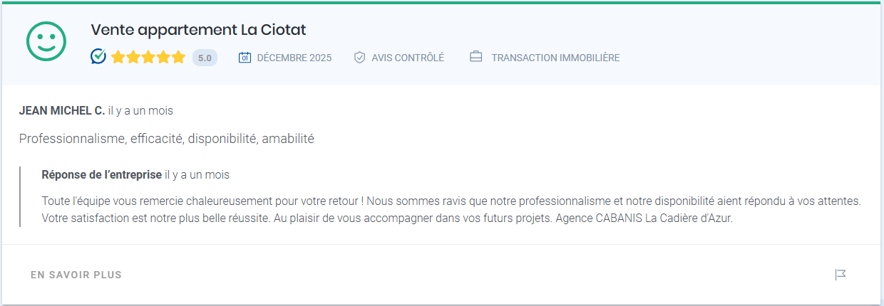 Implantées depuis 6 décennies, les agences immobilières Cabanis Orpi se distinguent par leur expertise dans le marché immobilier varois, notamment à Ollioules, Le Beausset, Sanary, La Cadière d'Azur, Toulon ouest, et Toulon. Que ce soit pour estimer, acheter, vendre, louer ou faire gérer votre bien : Nous travaillons à vos côtés pour concrétiser vos projets immobiliers !