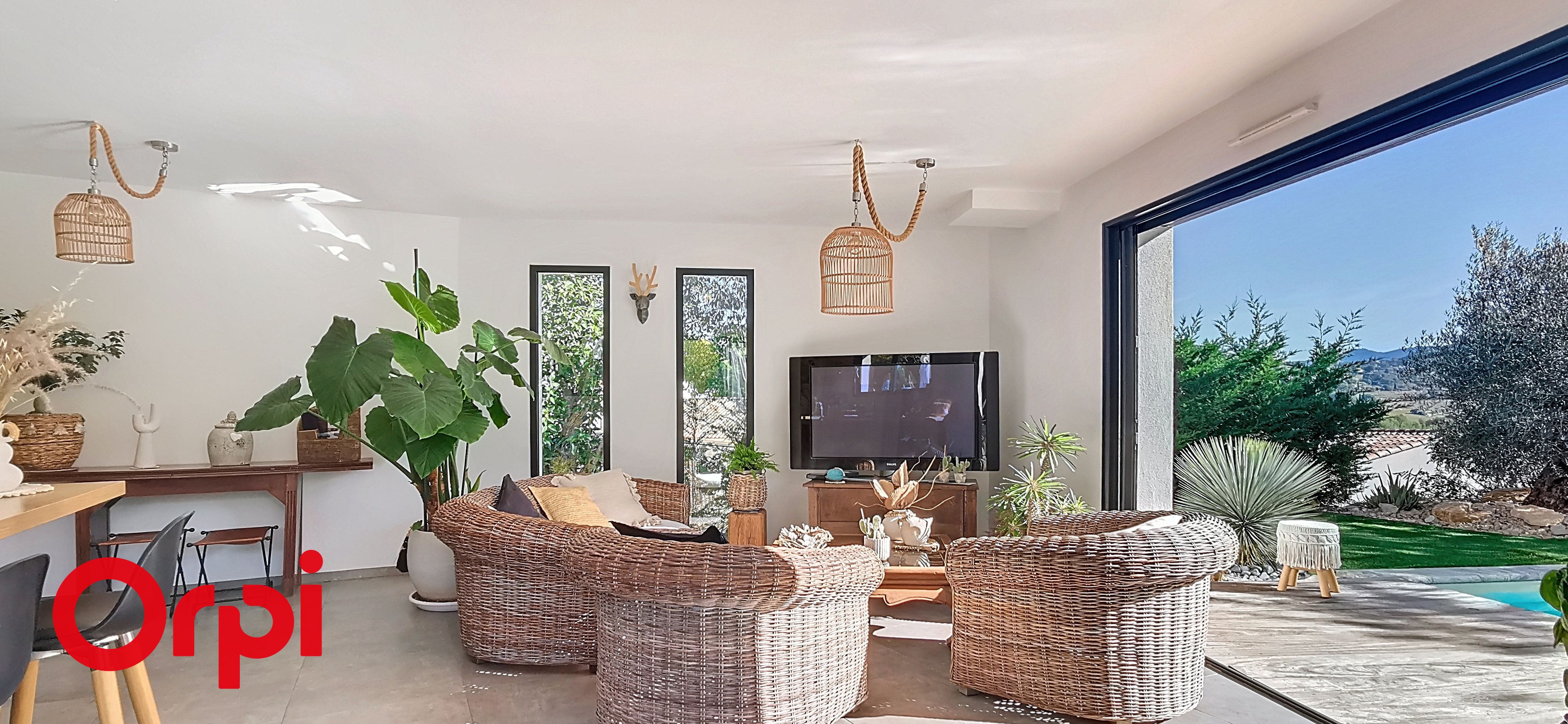 Votre agence Orpi Cabanis La Cadière d'Azur a le plaisir de vous proposer à la vente à seulement 5 minutes à pied du centre du village, cette superbe maison au goût du jour, baignée de lumière et nichée sur une parcelle de 800 m² parfaitement aménagée. D’une surface d’environ 103 m², elle offre au rez-de-chaussée une entrée avec WC indépendant, une spacieuse pièce de vie avec cuisine ouverte sur le salon, ainsi qu’une suite parentale dotée d’une salle d’eau et d’un dressing. À l’étage, vous trouverez deux belles chambres avec rangements intégrés, une salle d’eau et un WC indépendant. L’extérieur, soigné et convivial, propose une agréable piscine, un jardin paysagé et un petit garage. Un bien rare qui allie modernité, confort et charme, à proximité immédiate de toutes les commodités du village. Ne tardez pas à nous contacter au 0494982424 !