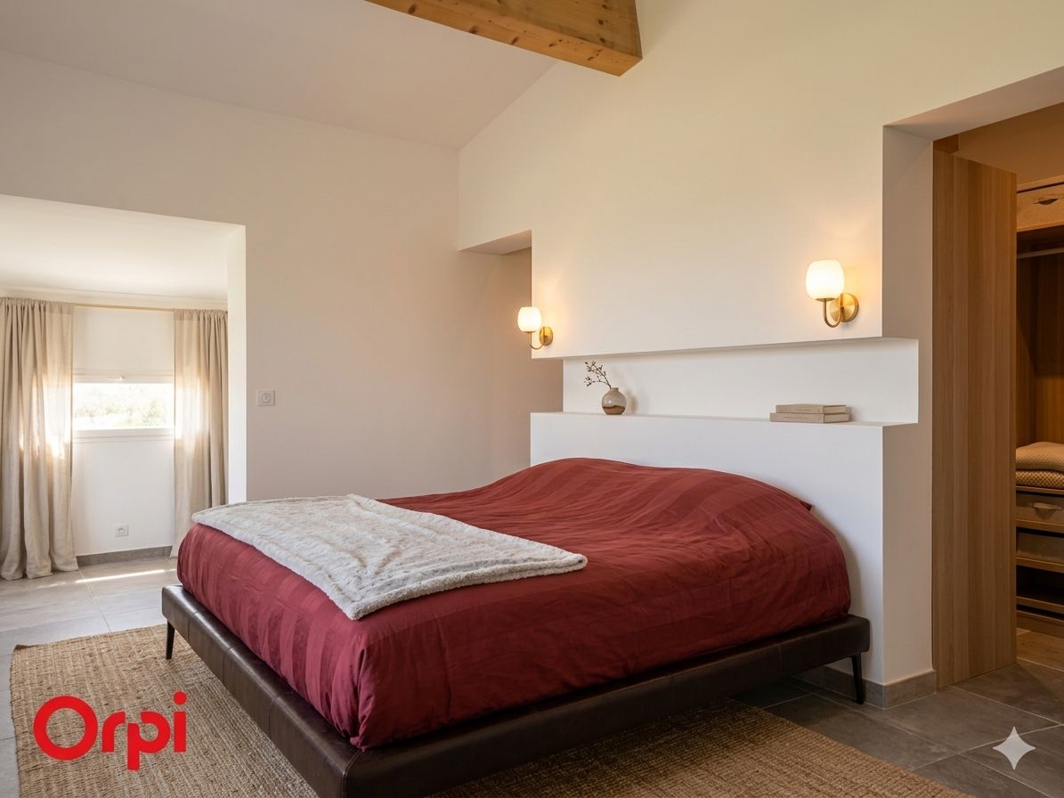 La villa dispose de 5 chambres, dont une master suite avec salle de bain privative profitant d'une vue imprenable sur le littoral. L'intérieur, optimisé par ORPI, est complété par deux salles d'eau, une buanderie et une cave saine. Chaque espace a été pensé pour valoriser le paysage environnant et offrir un confort de vie moderne.