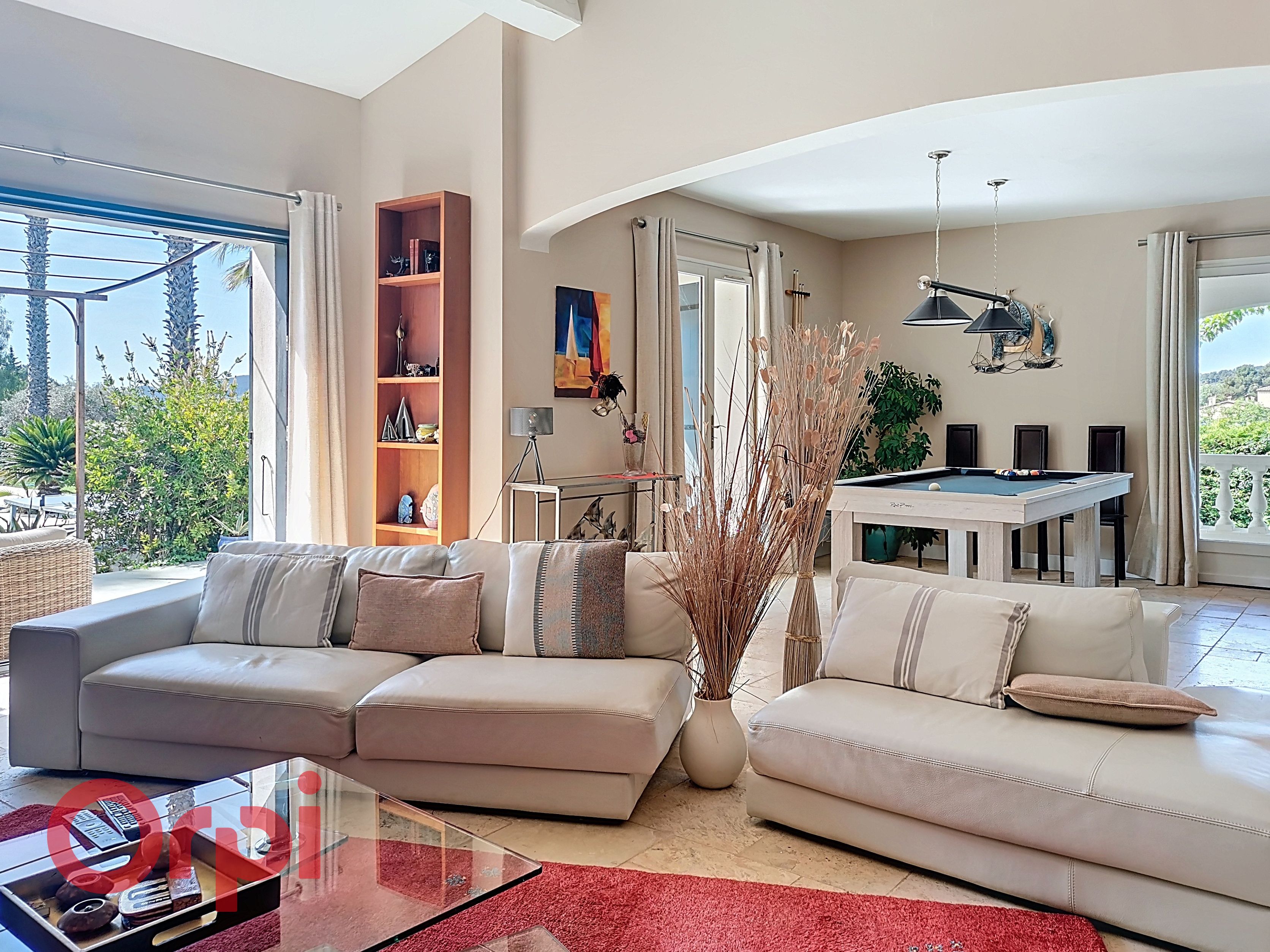 Commercialisé par notre agence de La Cadière d'Azur, l'intérieur de la villa a été conçu pour faciliter la vie quotidienne d'une famille. La distribution des pièces s'articule comme suit :